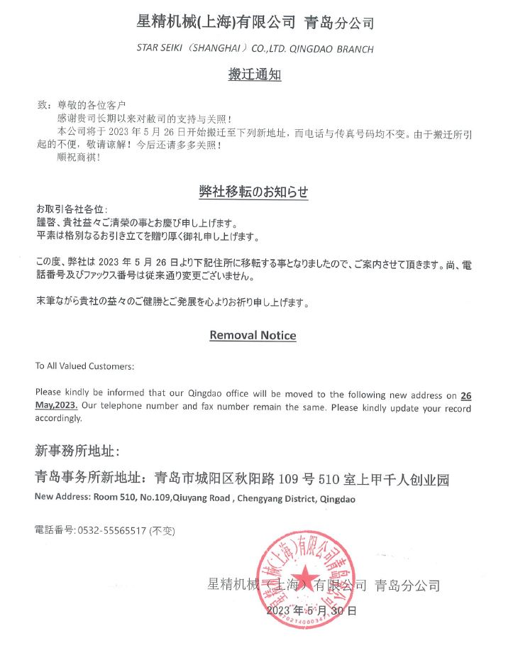 青島事務(wù)所搬遷通知