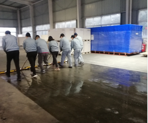 倉儲物流課的同事們齊動員,先進行成品倉庫的打掃,因成品倉庫每天都會有貨車來提貨,叉車在倉庫里來回穿梭,大門敞開所以倉庫灰塵比較大。大家先對卷閘門和墻壁進行打掃,用掃笤把上面的蜘蛛網(wǎng)掃掉,再用抹布擦拭清